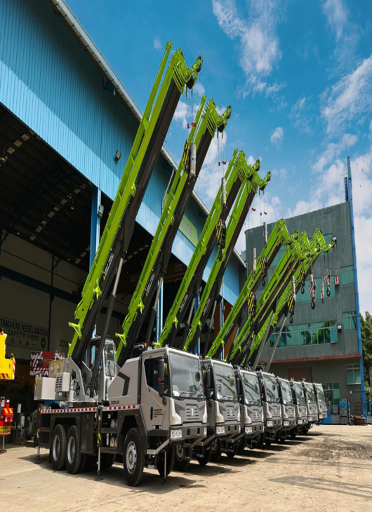 Wide range of rough terrain cranes, truck cranes, and crawler cranes ranging from 20 tonnes to 600 tonnes.